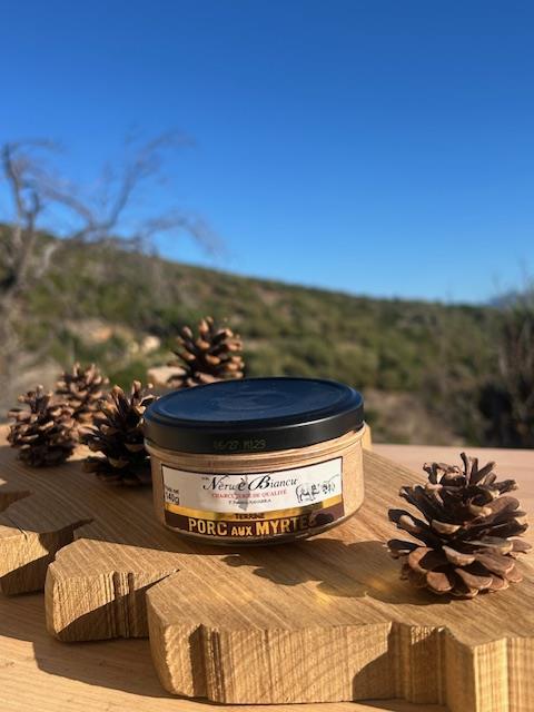 COMPOSITION. Gras de Porc, foie de volaille, BAIES DE MYRTES , viande de porc, oignon, eau de vie de vin, sel, fécule de pomme de terre, poivre et plantes aromatiques.